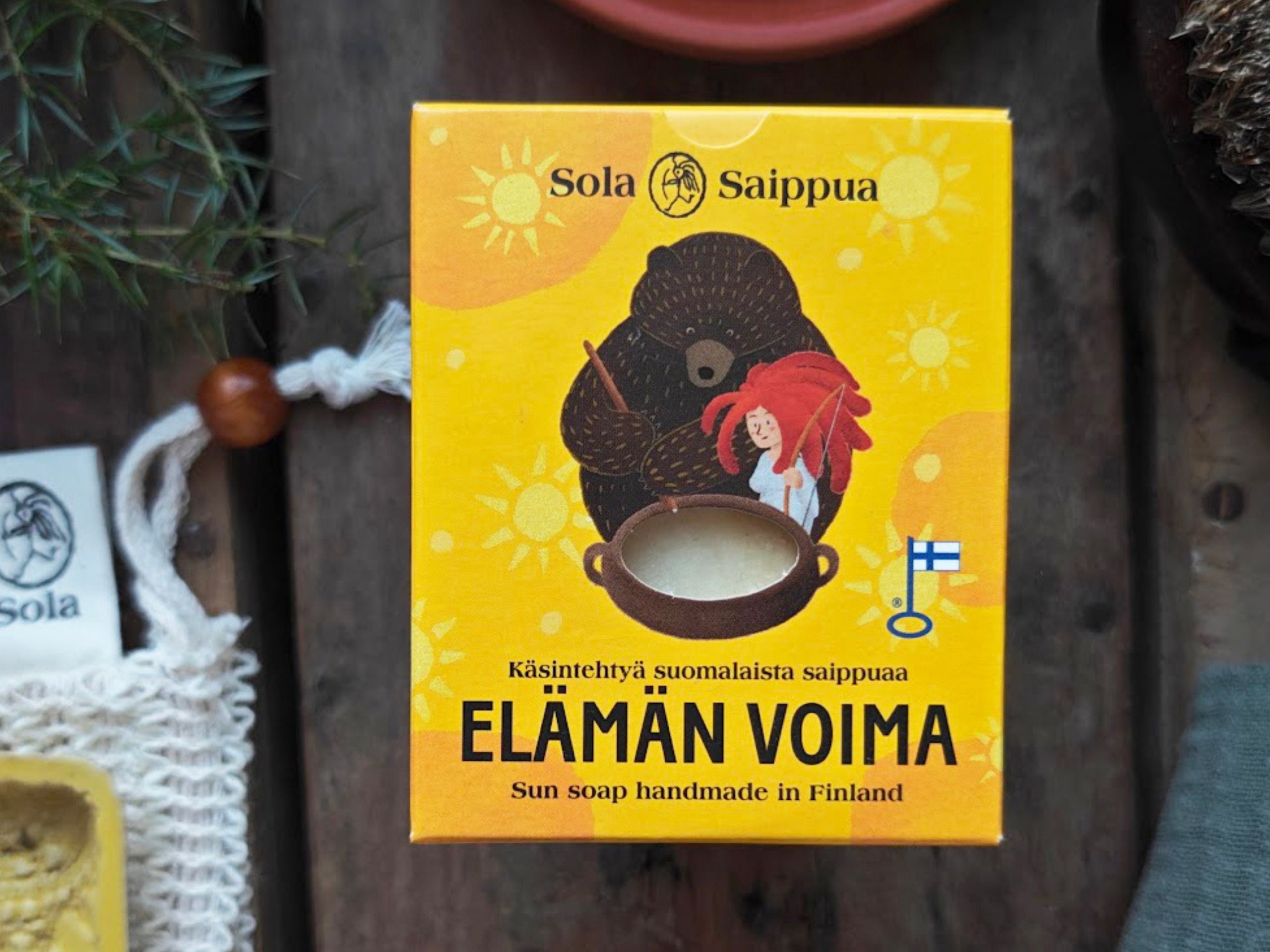 This soap honours the tenderness and joyfulness of the spirit of Sun. During summer and winter solstices folk celebrated Sun, the giver of Life. Päivätär in Finnish folk beliefs is the goddess of the sun and the day was when one could see her spinning golden threads in the heavens.